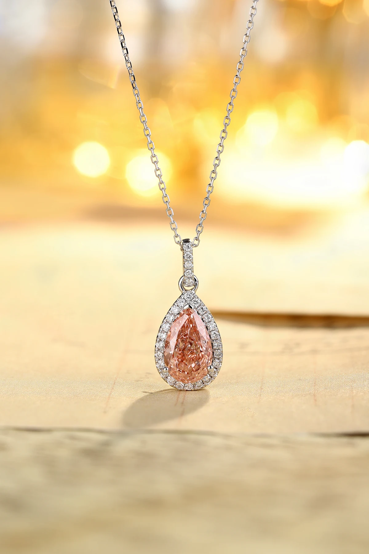 Pink Lab Grown Diamond 2.32CT Pear Cut Drop Pendant Necklace PT950 Fine Jewelry Fashion Trendy Style Girl Women Birthday Gift