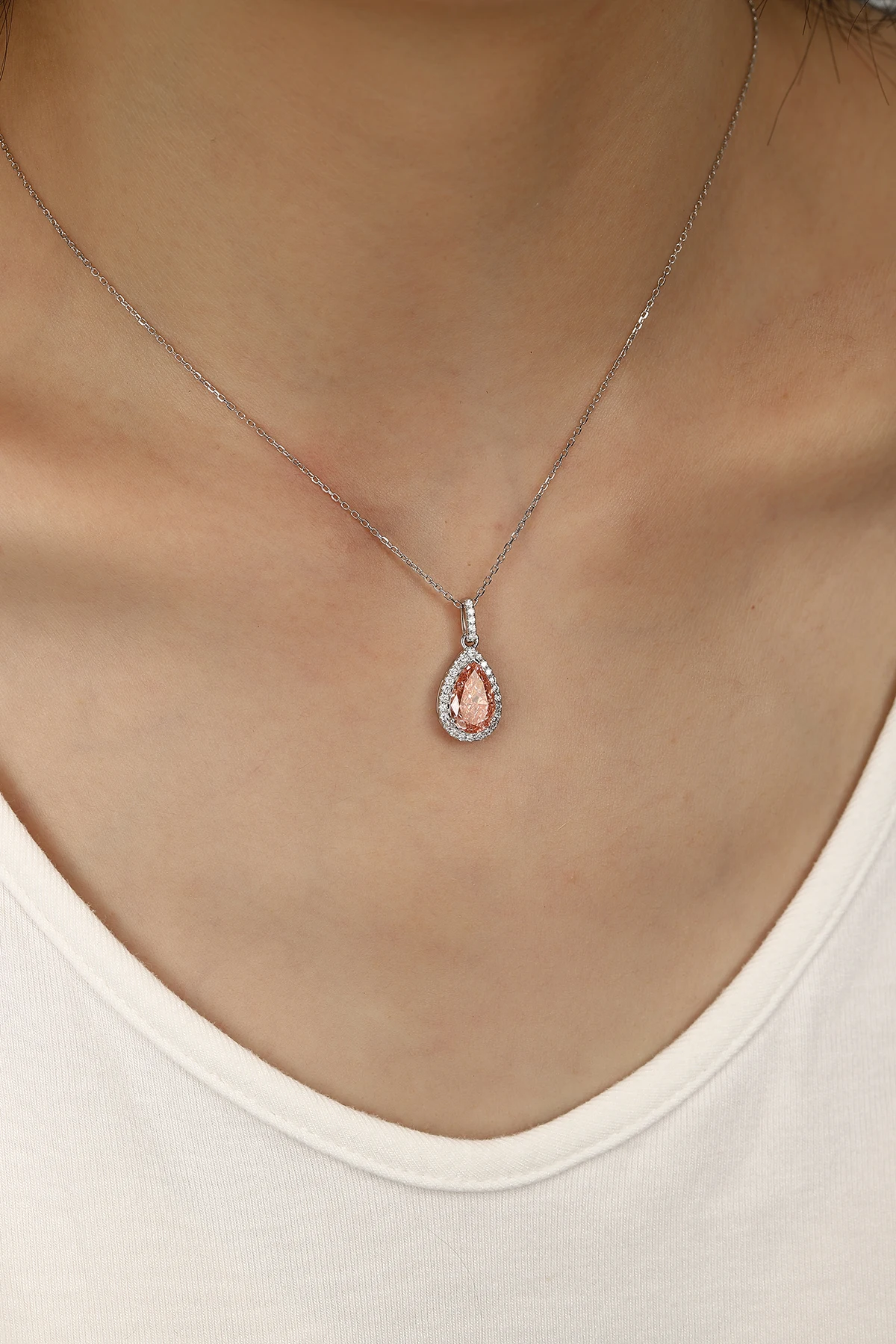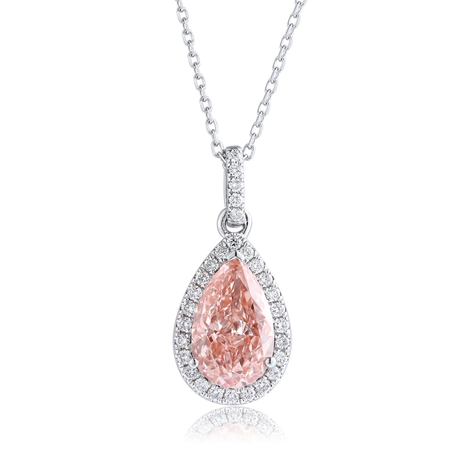 Pink Lab Grown Diamond 2.32CT Pear Cut Drop Pendant Necklace